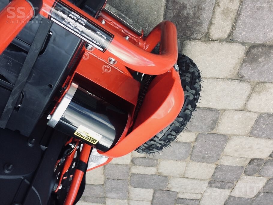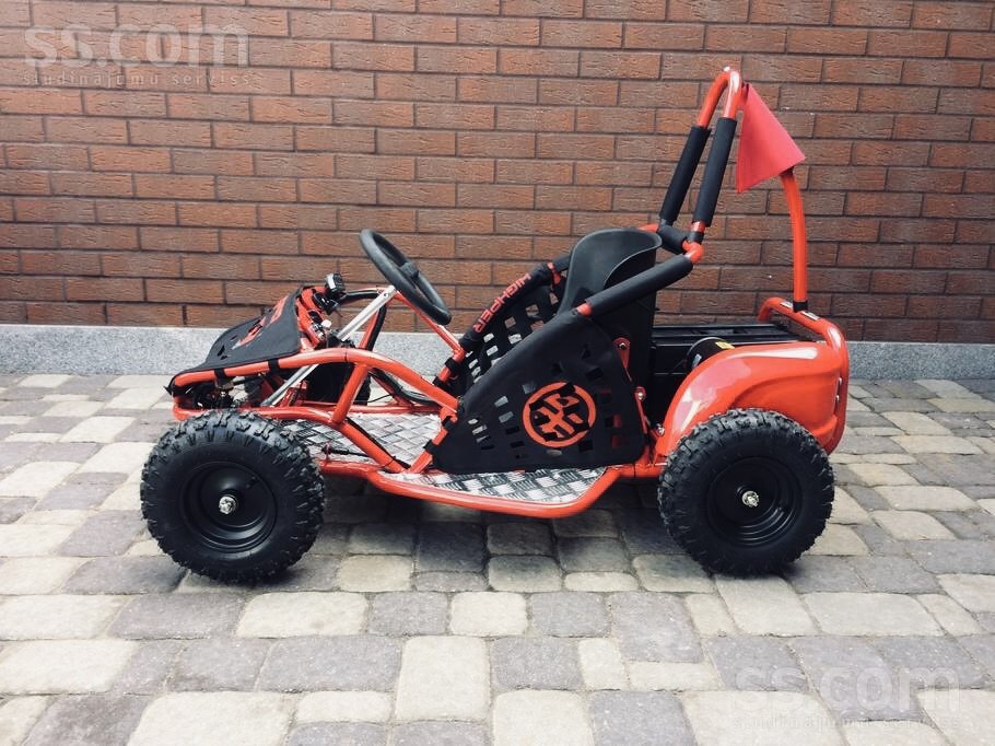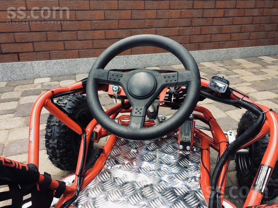 Pārdod jaunu elektro 1000w bagijuModelis: G K 005Dzinējs: 1000 Watt / 36 Volt.Ātrumkārba 3 ātrumi uz priekšu un atpakaļgaita.Ātrums: 3 ātrumi;0 – 5 km/h, 0 – 15 km/h, 0 – 35 km/h.Akumulators: 48V / 12 Ah.Regulējams sēdeklisAizmugurējas hidrauliskās bremzesIzmēri:1300×820( garums/ platums ).Riteņu izmērs priekšā:13×5.00-6Riteņu izmērs aizmugurē:13×5.00-6Svars 70kg.Nestspēja 75kg.Garantija. Servis.Iespējama piegāde visā LatvijaUz vietas pieejamas visas rezerves daļas.https://www.ss.com/msg/lv/transport/moto-transport/quadrocycles/atv/Un0AG0BhQVs=.html?1685866718