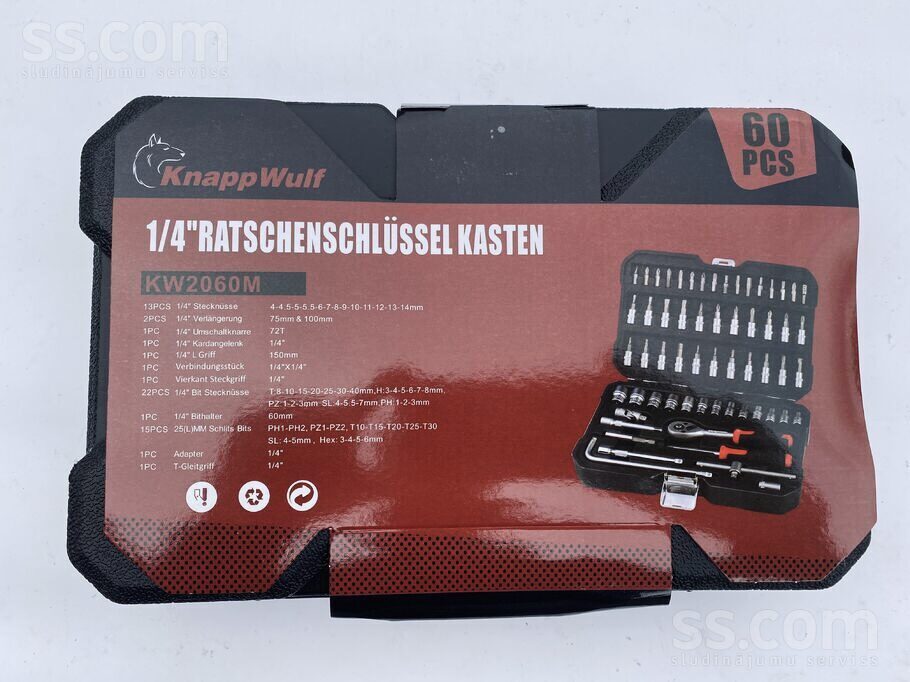 Jauni Knappwulf atslēgu komplekti no Vācijas. Models:kw 2060M Vienības: 60 Piedāvājumā ir arī citi instrumentu komplekti.Iespējama piegāde.